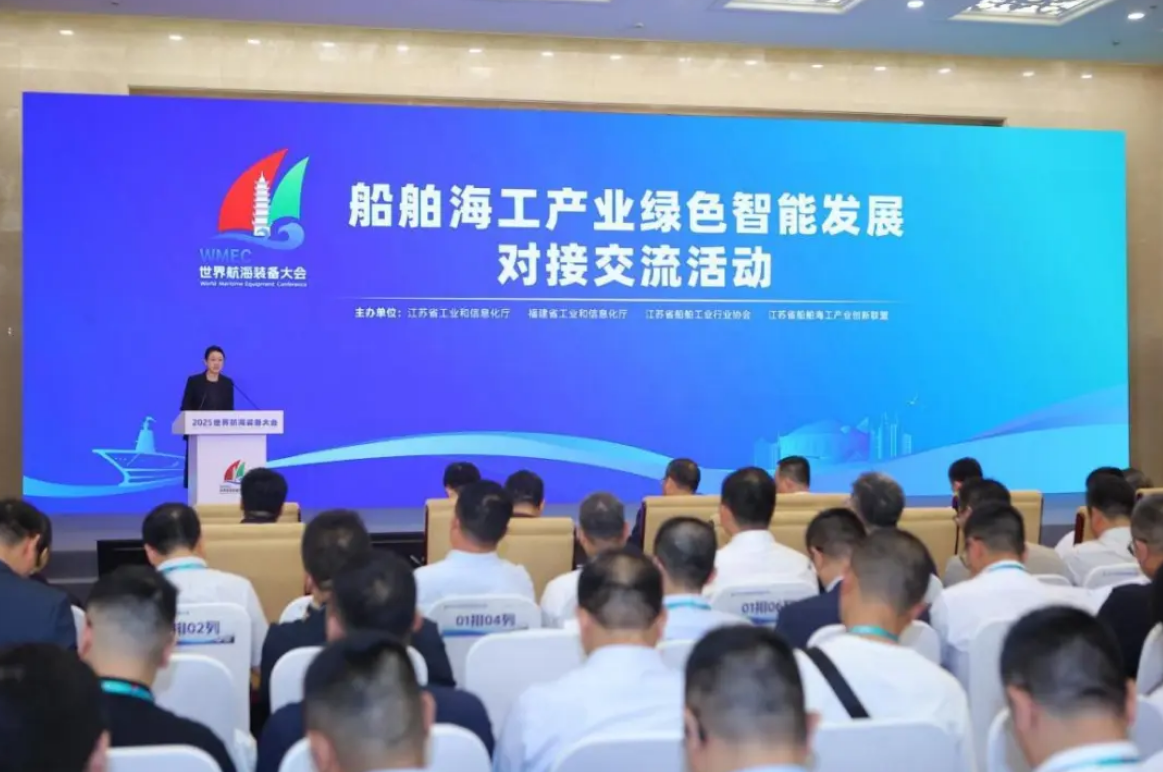 10月16日下午,作为2025世界航海装备大会的系列活动之一,江苏省工信厅、福建省工信厅、江苏省船舶工业行业协会、江苏省船舶海工产业创新联盟共同组织的“船舶海工产业绿色智能发展对接交流活动”成功举办。活动由赵冉副主任主持,李锋副厅长出席活动并作总结讲话。江苏省各有关设区市工信系统负责同志,苏闽两省船舶海工重点企业、智改数转网联服务商共130余人参加了活动。福建省工信厅党组成员、副厅长陈亮出席会议并致辞。