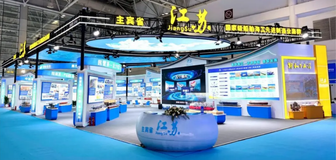 在展会现场,江苏搭建了540平方米的主宾省展区,省内优质船舶海工企业积极参展,重点展示36个高端船型与配套产品,包括全球首制江海直达纯电动力集装箱船、大型浮式液化天然气生产储卸装置、全球最大24000箱集装箱船、汽车运输船等“大国重器”,集中呈现我省全船型谱系化综合建造能力。