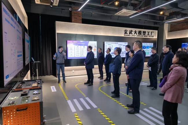 11月11日,省工信厅党组理论学习中心组成员走进南京市玄武大模型工厂,实地调研了解1500P算力支撑下的高效运维与五大平台服务,直观感知以数据为“矿石”、算法为“熔炉”的创新生态,深刻体验大模型在政务、公证、制造等场景的落地实效,充分感受“AI + ”深度融合的强劲动能。活动邀请玄武大模型工厂核心技术平台独家运营方华清智言科技有限公司总经理李强,围绕“什么是大模型、大模型的研发与应用、大模型的生态建设”三大核心内容作专家辅导, 厅党组书记、厅长朱爱勋主持活动并作总结讲话。