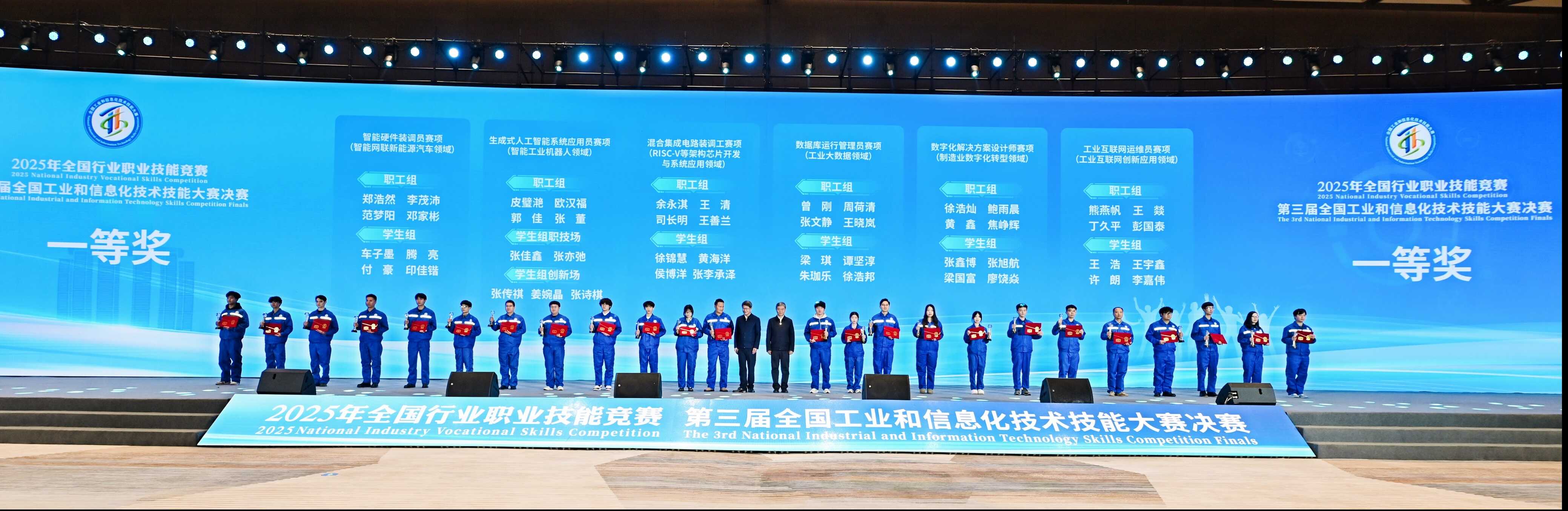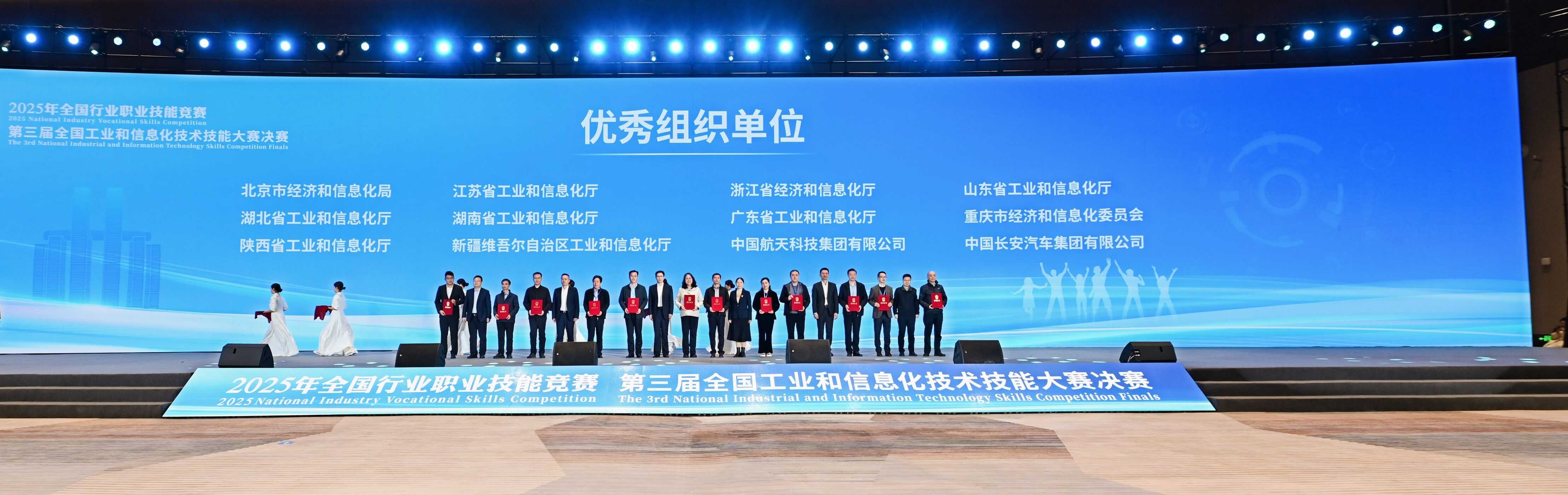 11月26日至28日,2025年全国行业职业技能竞赛——第三届全国工业和信息化技术技能大赛在重庆举办。江苏省经省级选拔赛产生13支队伍、27名选手参加全国决赛。经过激烈角逐,江苏代表队表现出色,12支队伍获奖,其中一等奖2个、二等奖8个、三等奖2个,获奖等级和数量均为历史最佳。江苏省工业和信息化厅荣获全国“优秀组织单位”。
