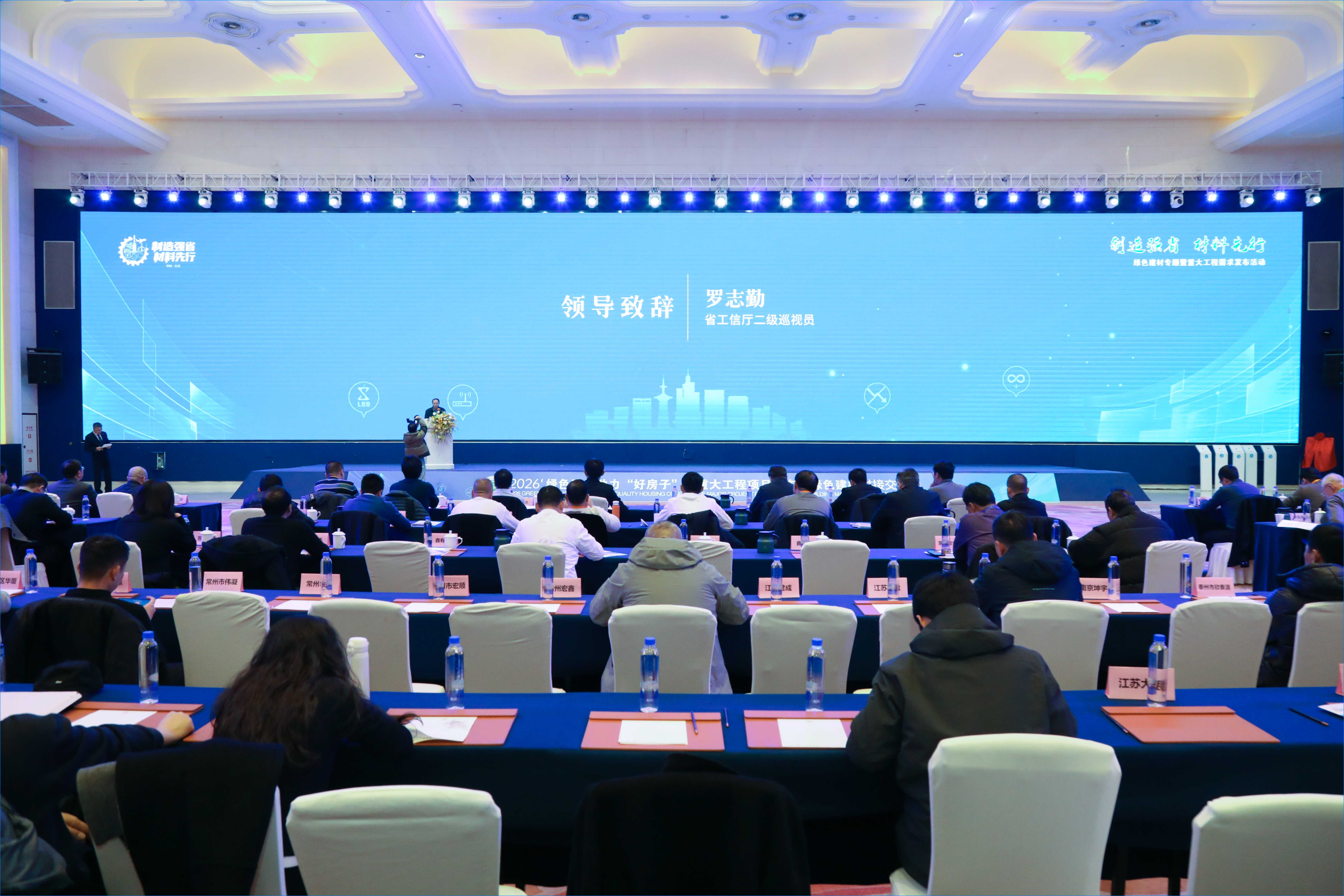 1月23日,“制造强省•材料先行”——绿色建材专题暨重大工程需求发布活动在南京市成功举办。本次活动由江苏省工业和信息化厅、绿色建材产品认证技术委员会指导,江苏省绿色建材建筑合作联盟、绿色建材产品认证技术委员会夏热冬冷地区工作委员会主办,江苏省苏商发展促进会、江苏省工程咨询中心有限公司承办,省工信厅二级巡视员罗志勤出席活动并致辞。
